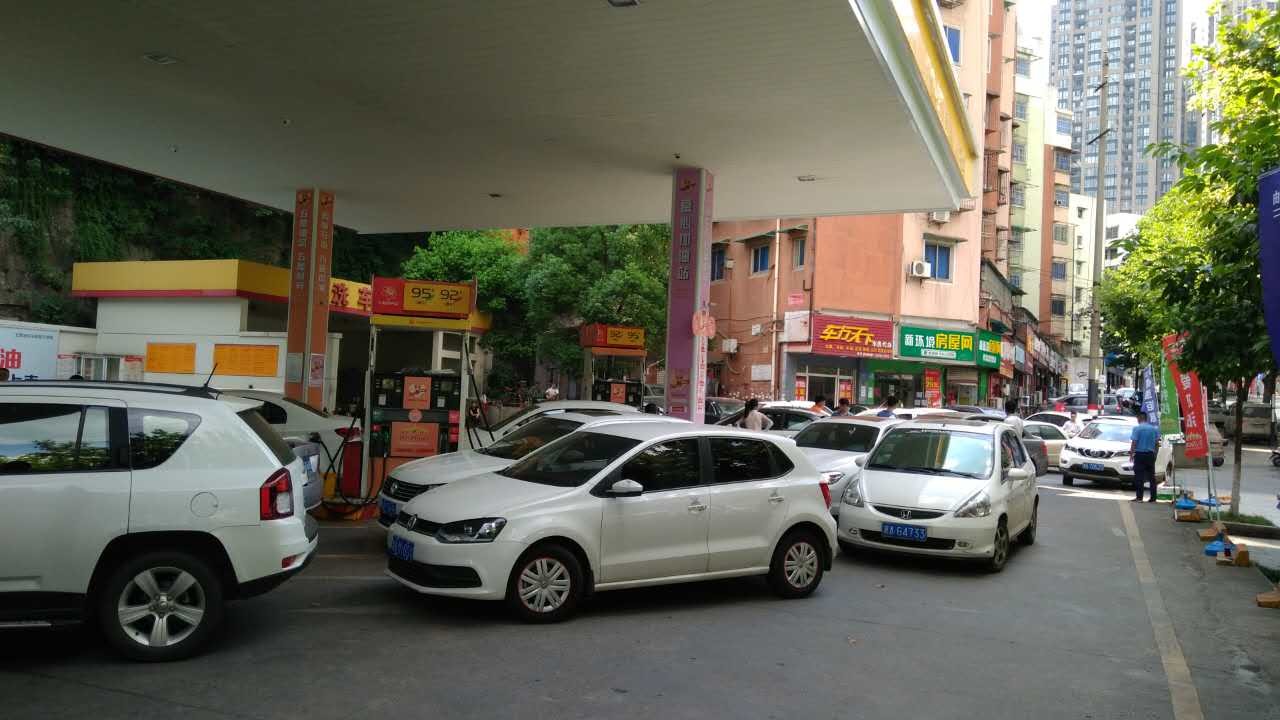 7月18日,蓝天如洗,加油站内彩旗飘飘,从上午7:00开始,各加油站便进入了忙碌不停的状态,一整天车辆川流不息,络绎不绝。