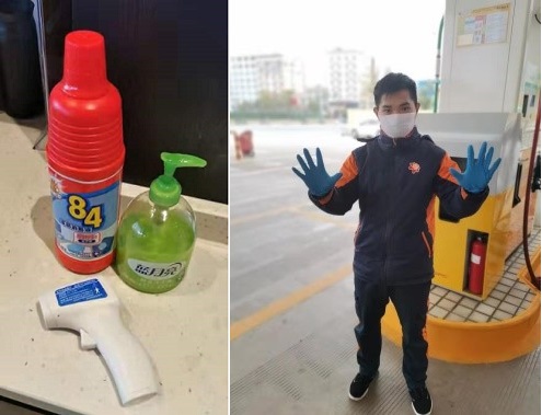 个人防护标配:体温枪、洗手液、消毒液、口罩、橡胶手套。1月21号开始,公司行政就在全力采购口罩,84消毒液、红外体温计,橡胶手套等防疫物资,及时配送到站点,从我做起,保护好自己同时在加油服务时提醒车主少外出,出门记得戴口罩。